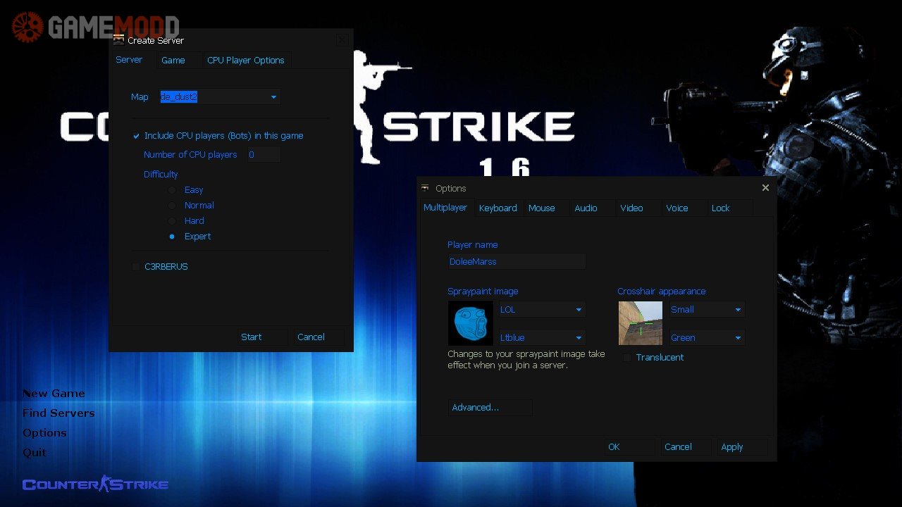 HD Background (by SAS1) - New color of Counter Strike 1.6 logo (the logo below the menu) - New Color for VGUI and Command Menu - New Color for Score Board - New panel icon.
