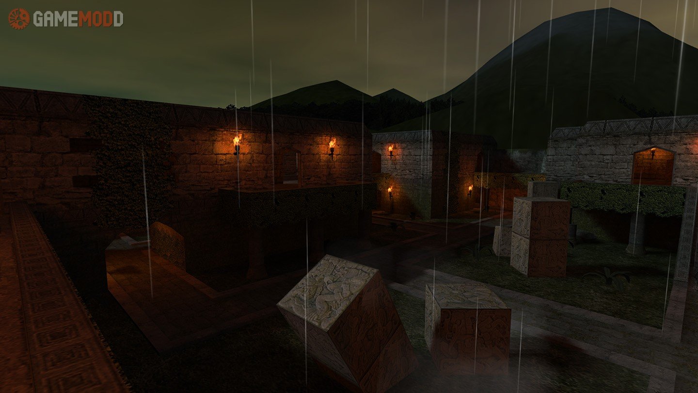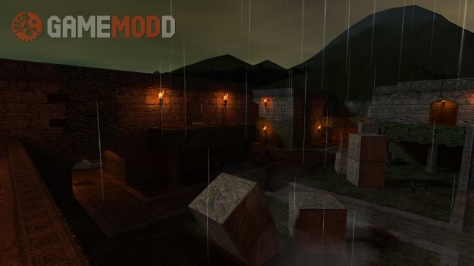 This map is made of course for GG mod. I created everything from scratch excepting textures and models. Aztec style, rain, night and torches gives awesome impression so I tried to use this in my map and I think it was a good idea...