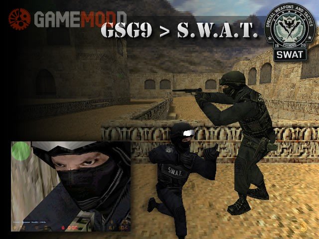 This skin replaces the default GSG9 into a member of the SWAT team, it's very important to create backup files before to install it.