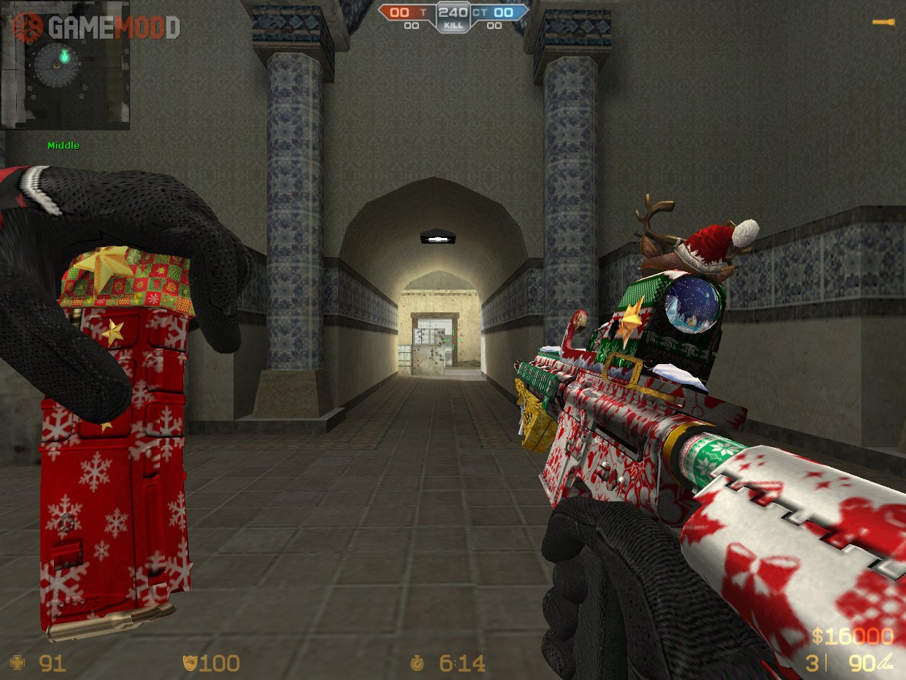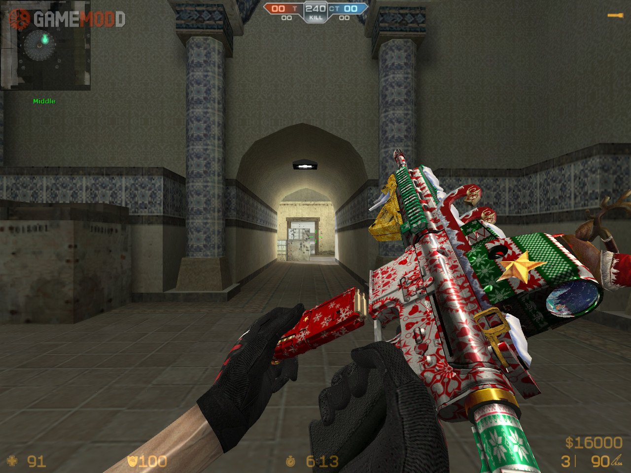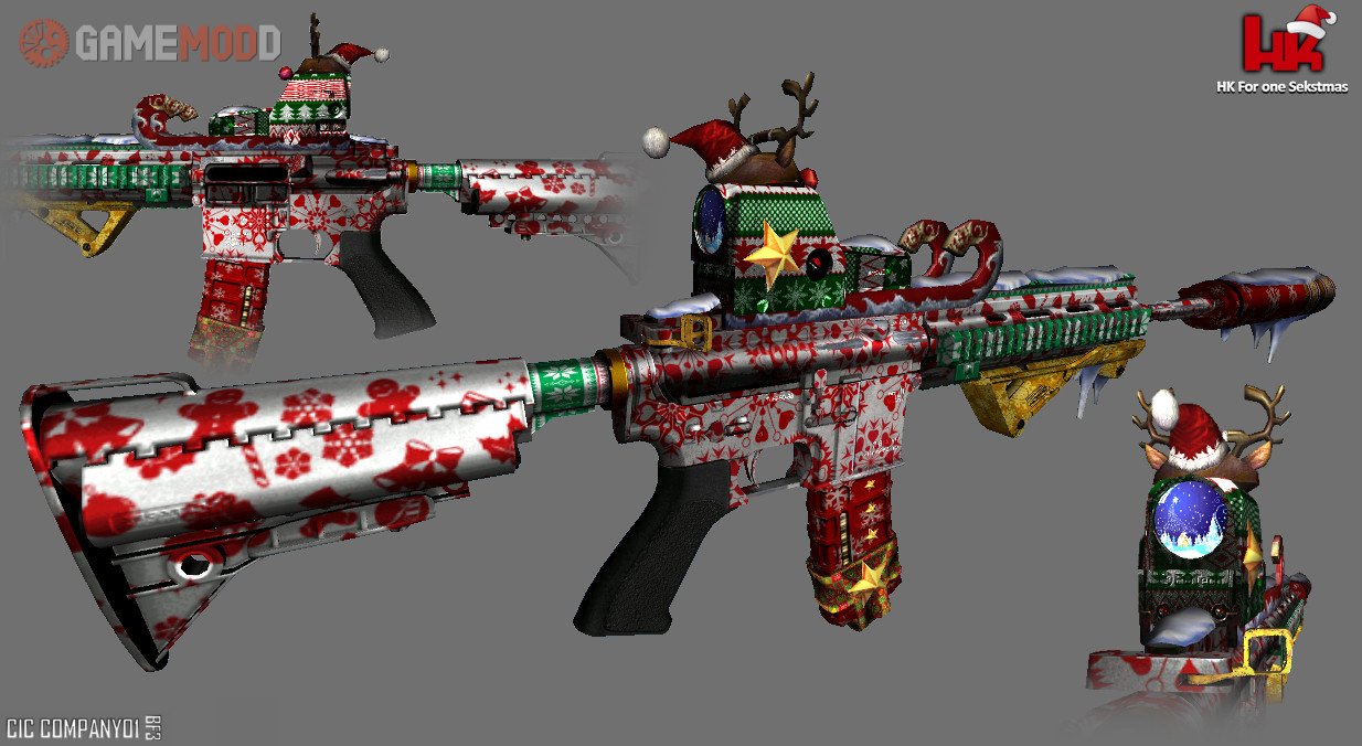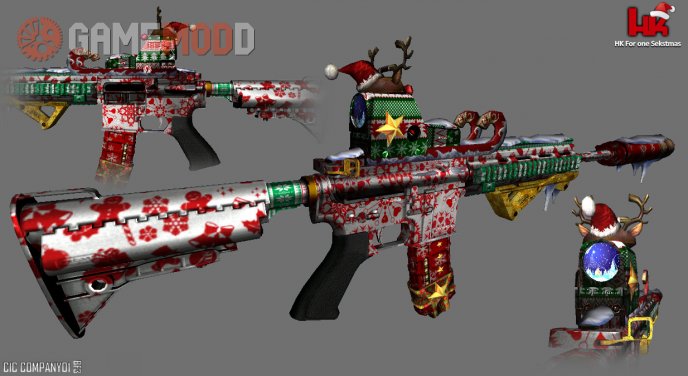 This New Year's Skin Rifle Colt M4A1 for the game cs 1.6, is great for replacing the standard. Here, and nice external texture of the weapon, as well as the authors made a decent animation of the shot and movements. Download and enjoy this skin.