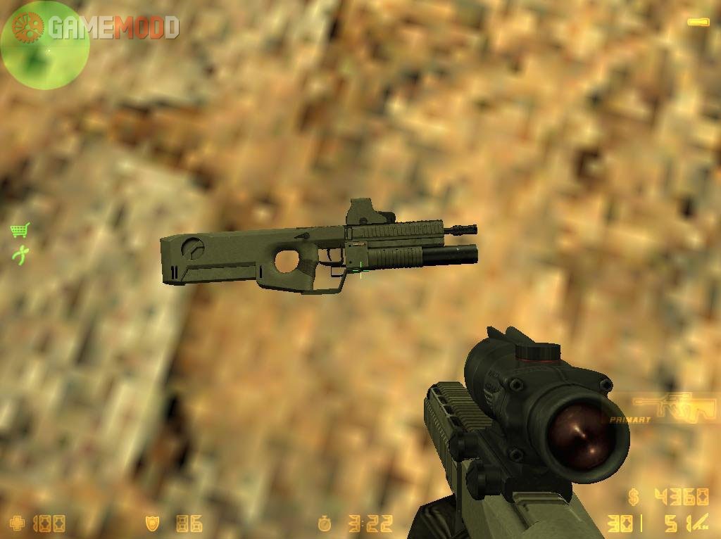 A worthy replacement for the standard SMG skin P90 for cs 1.6. The texture of the model of the weapon is well made, and the animation of shooting deserves special praise. Enjoy.