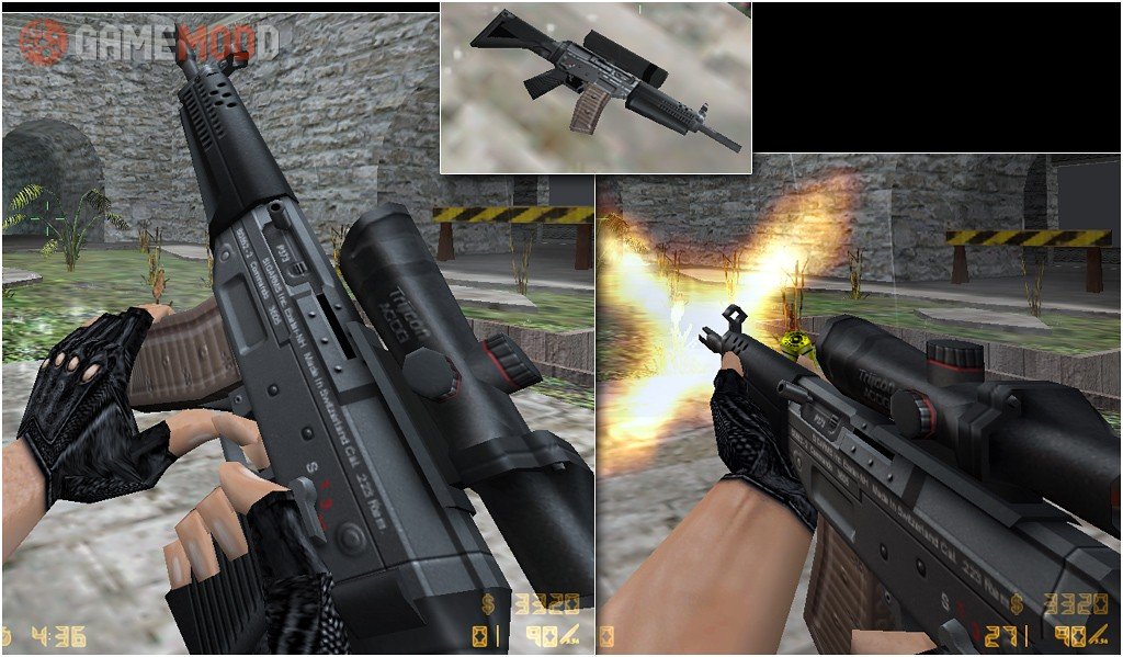 A cool model of the weapon (Rifle Sig 552) for cs 1.6. If you are tired of the factory skin, then safely replace with this one. Beautiful textures, good animation and nice sound, will please you.