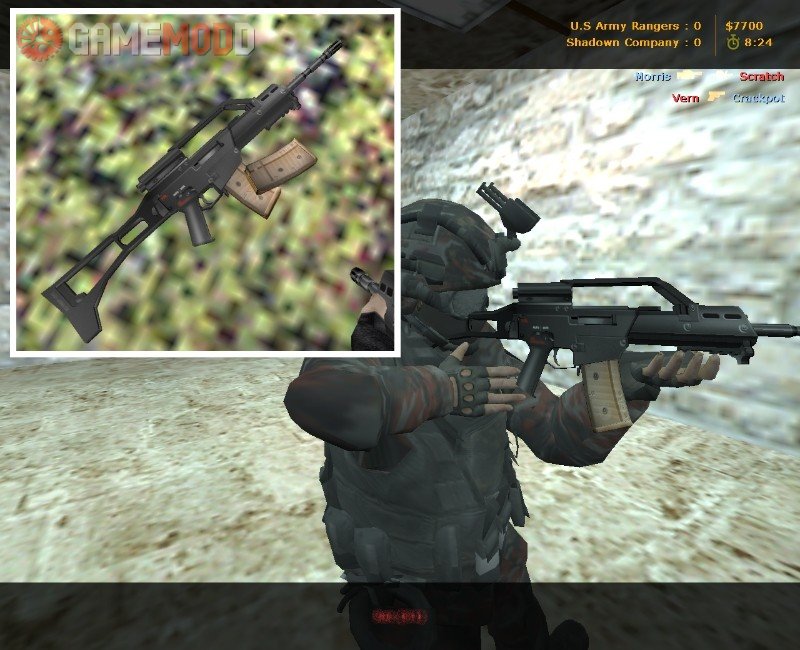 Another good leather weapon is the SIG 552 for cs 1.6. The cool rifle has a good texture and good animation of the action. Load and evaluate the skin.