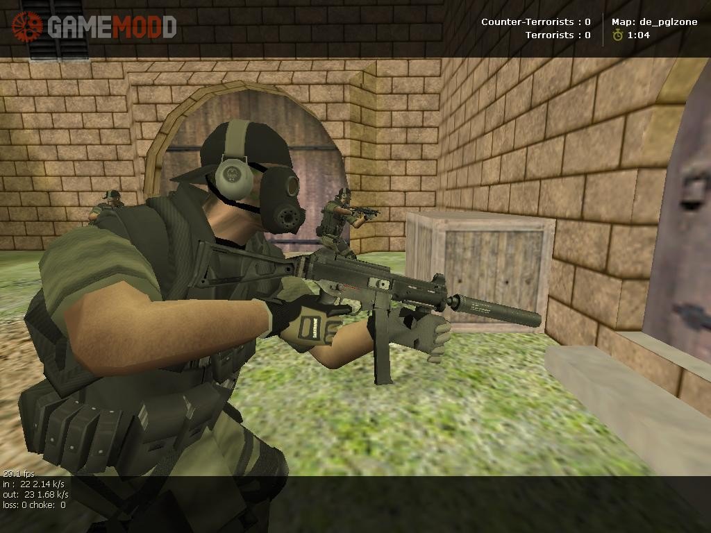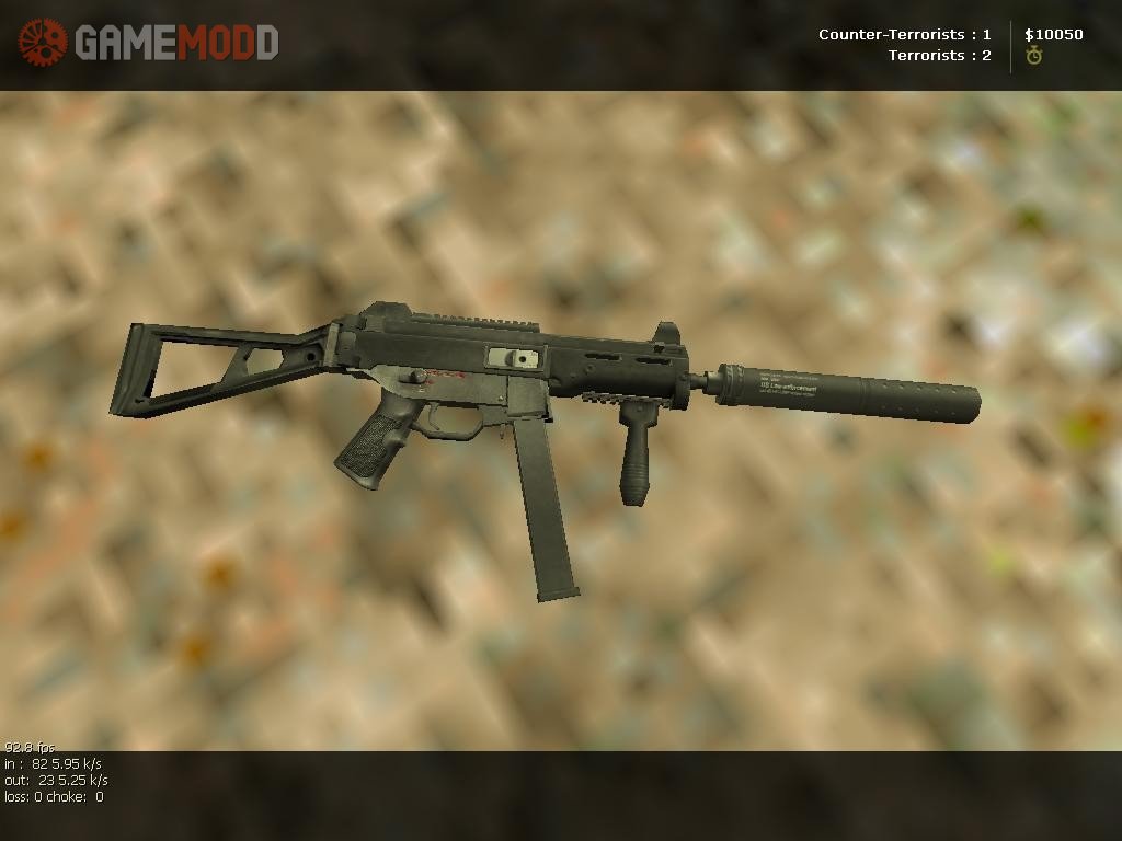 Silenced version HK smg weapon. This model taked from [JP]MrLOL Skinapack for CS 1.5, and i just reanimate this model, rig on custom anims, fix smooth errors and made hand rig.