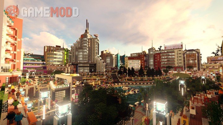 The City Of Color is a vibrant modern city with futuristic architecture. This building was inspired by the city from the game Mirror's Edge.