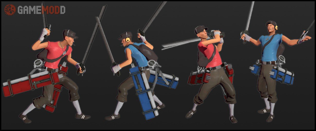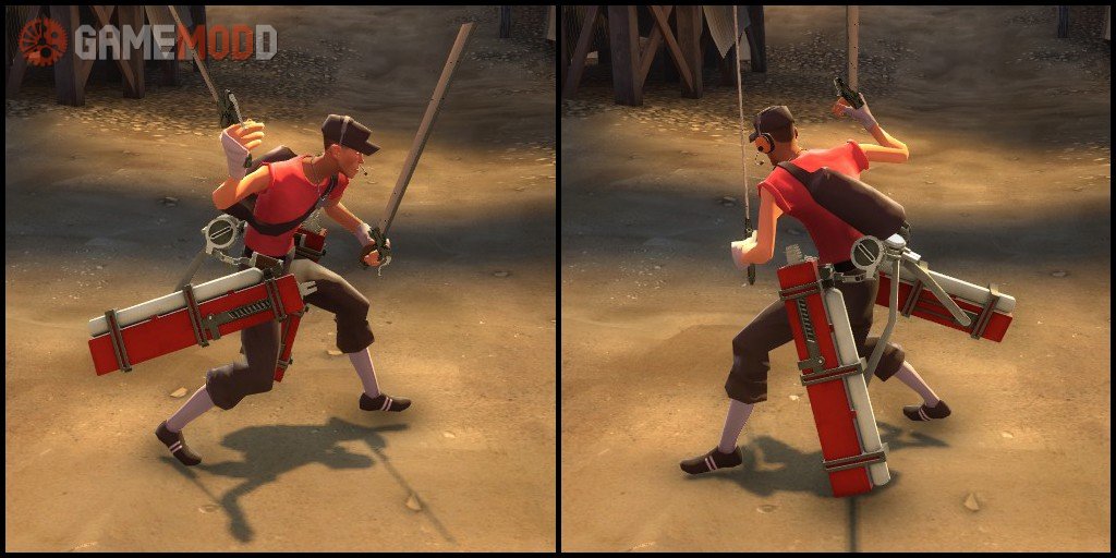 Download worthy of note Cosmetics skin Three Dimensional Maneuver Gear for Team-Fortress 2 Game.