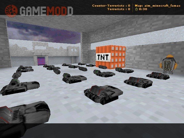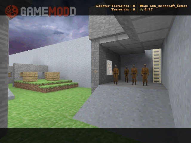 Minecraft - Combat/Skill A simple aim map, created with minecraft textures, in this map you only use famas, you can find grenades and suits. Ct's: Save the Hostages from the Terrorists or Stop Terrorist's plan (The bomb) T's: Kill Ct's, keep the Hostages or Plant the Bomb INSTALLATION: Download the file, later extract it in cstrike, nothing more to do. I hope you Enjoy it!
