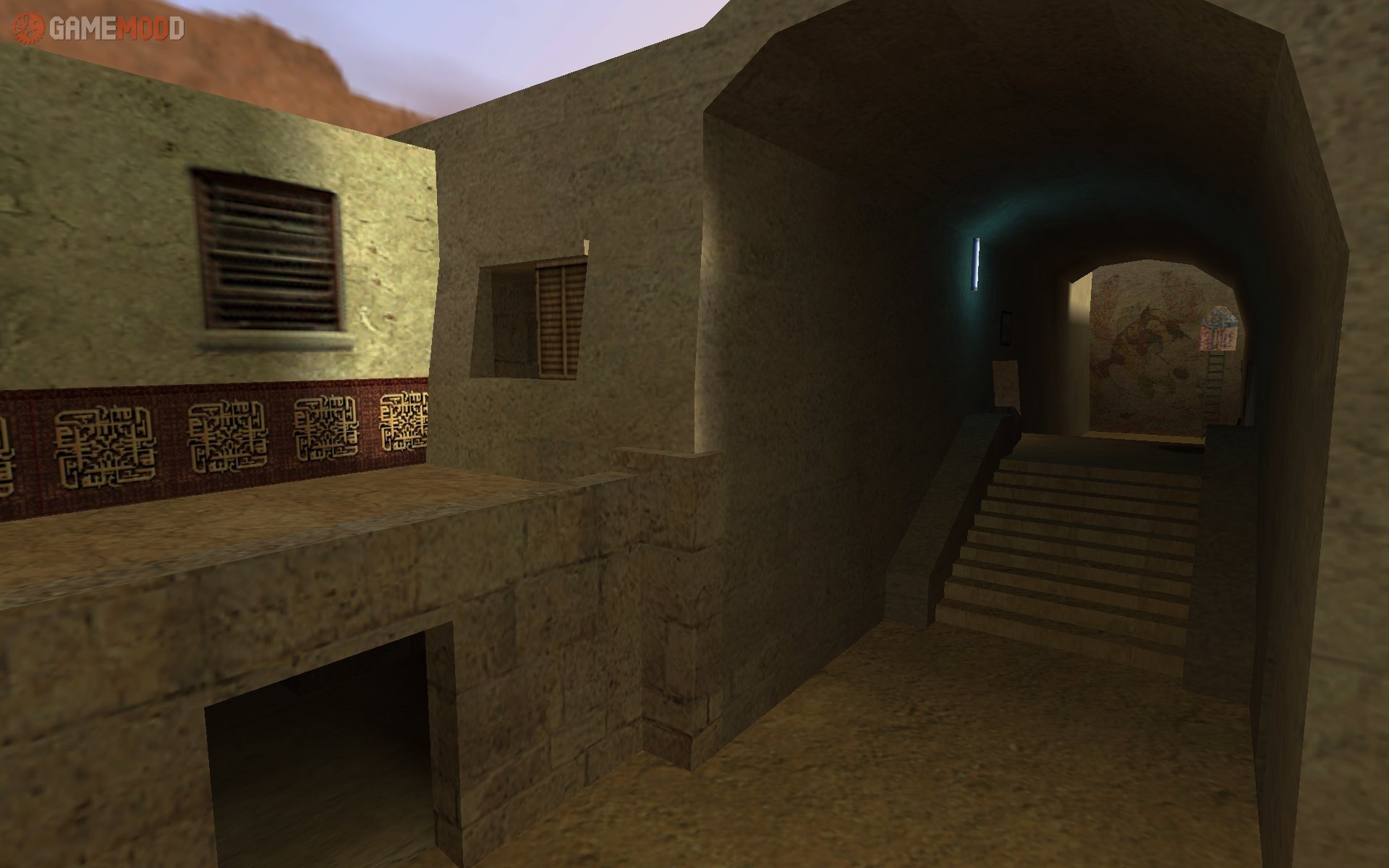Remake of cs_arabstreets, builded from carefully restored decompile. Archive includes 2 rmf, original of cs_arabstreets and my version. About map, I've added several new passages (you can see it on screens), also now you can get to the base of T through conditioner in the window. Light in building can be switched off (like in old version of the cs_arabstreets). PS. I dunno what SWAT van from LA doing in Iraq.
