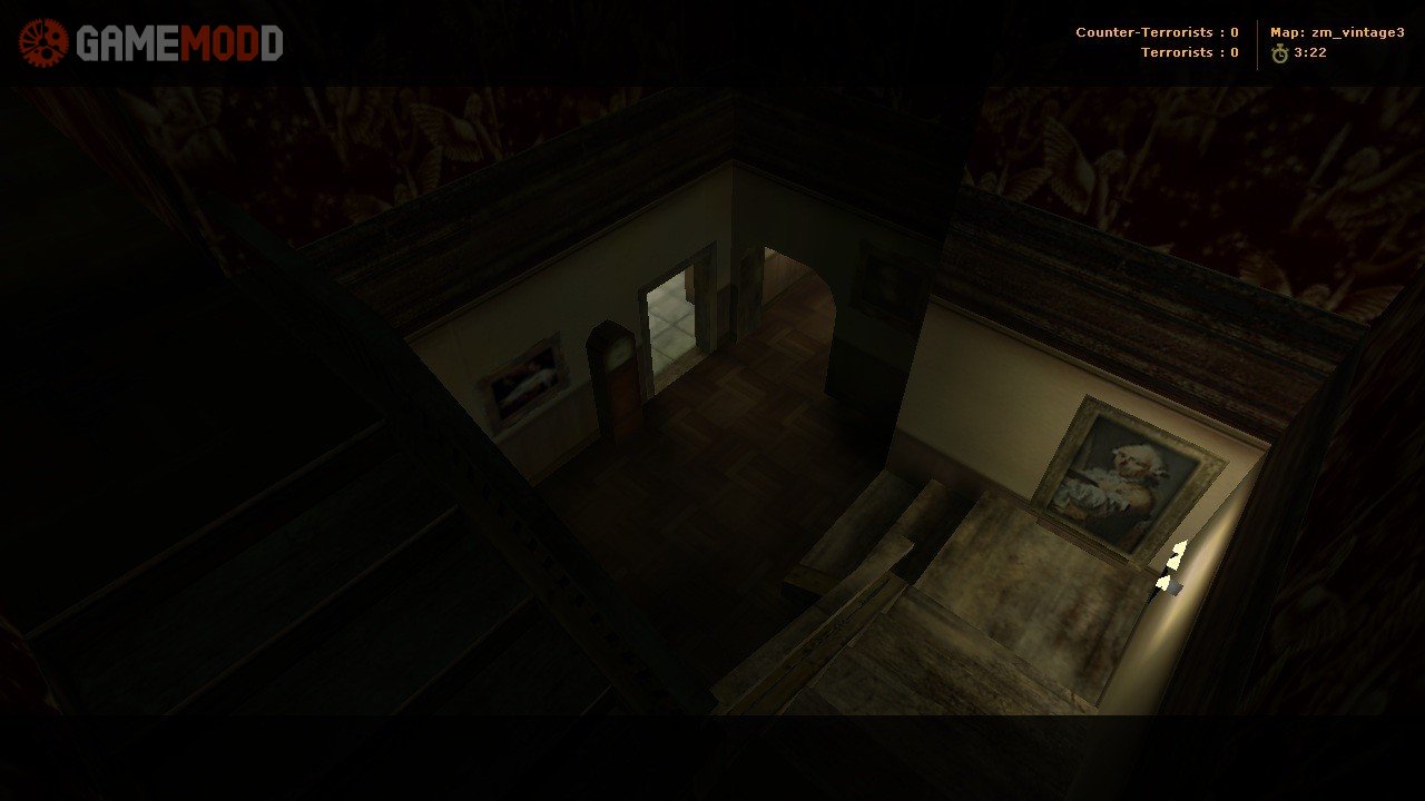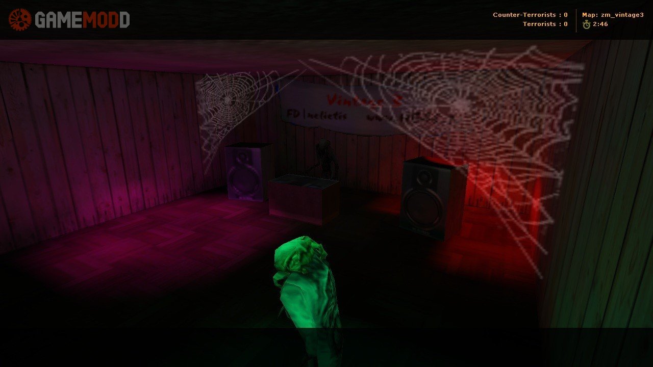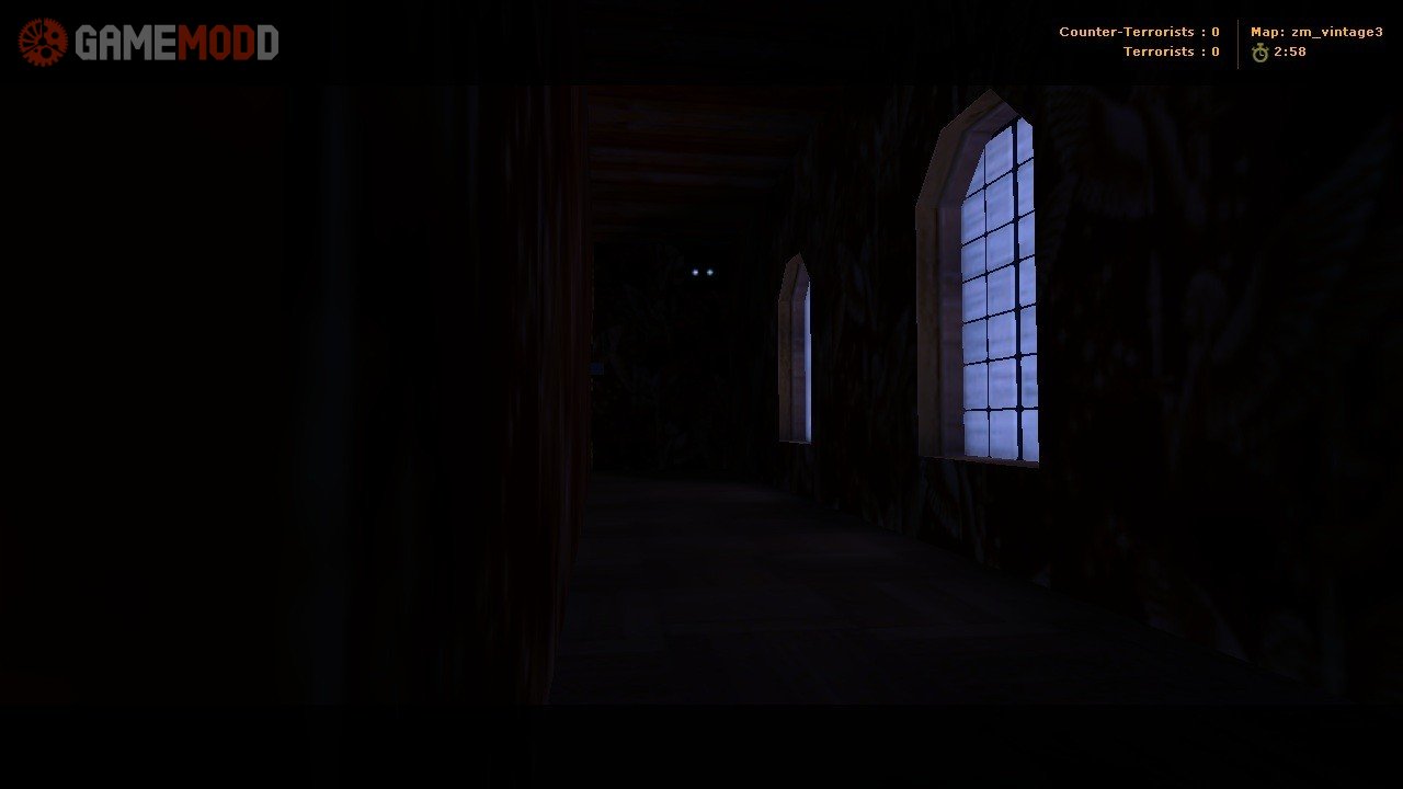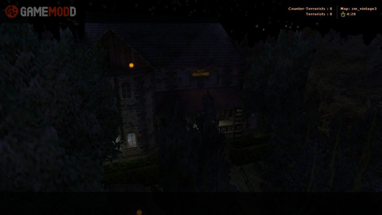 Medium sized zombie mod map. Loads of secrets, spooky stuff, AND - a Halloween party! Just find and shoot ALL thhe Jack O'Lanterns to enter. Keep your eyes peeled for secret doors, and here's a piece of advice - try paintings and lamps, they might just open some doors for you! I would suggest you get Michael Jackson's "Thriller", convert it to 16bit / 8 Khz / Mono wav file, rename it to play, and put in cstrike/sound/ngyl_mns3 folder. Oh, and, if you hate the music - just type 'stopsound' in console. Or delete the original play.wav from ngyl_mns3 folder.