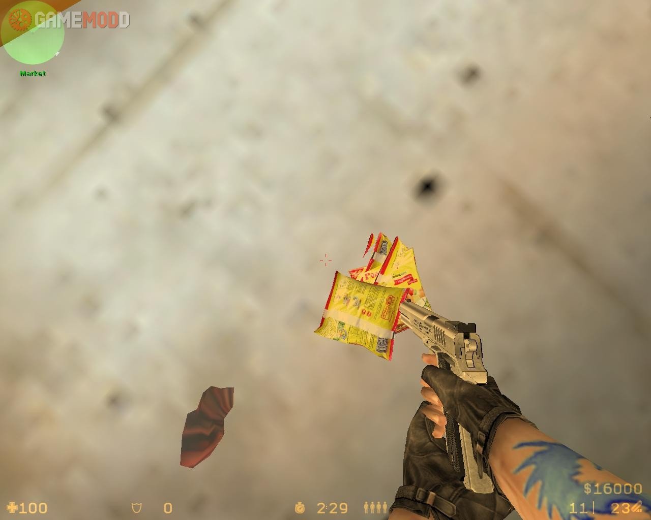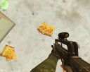Chicken Meat! When you shoot the chicken, it will explode into noodle packets lol.