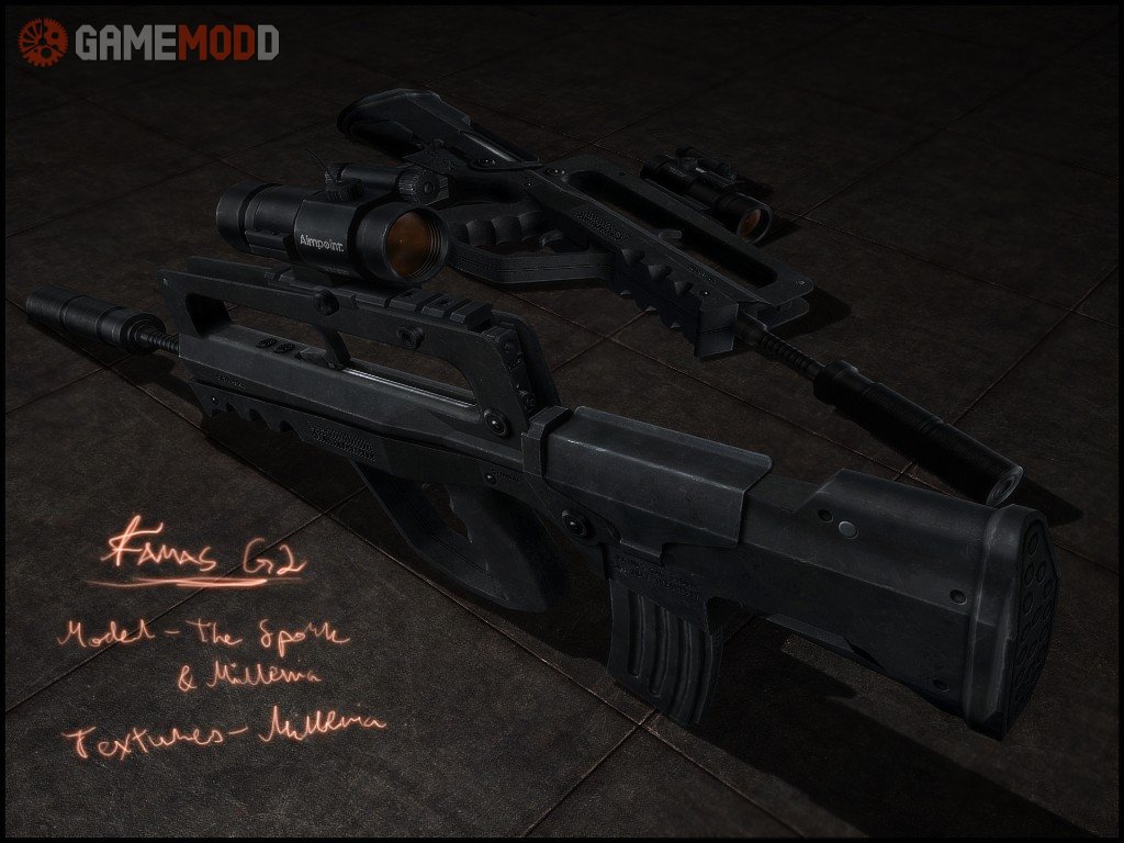 Download this weapon Rifle FAMAS for cs 1.6. Here you will find a beautiful skin texture, nice animation of the shot and recharge, as well as a decent sound. Rate it.
