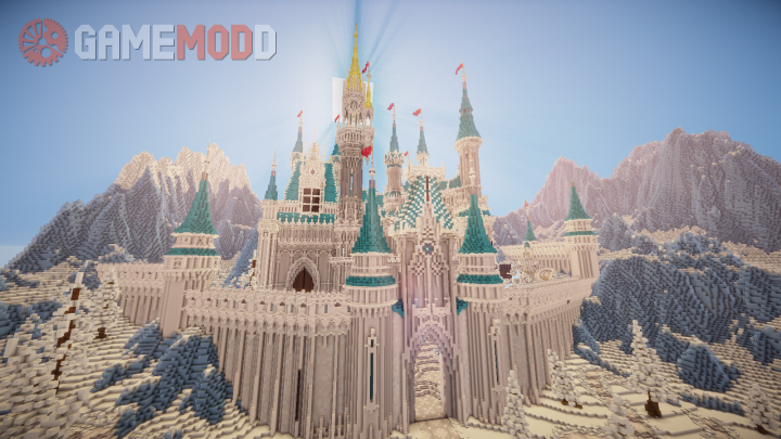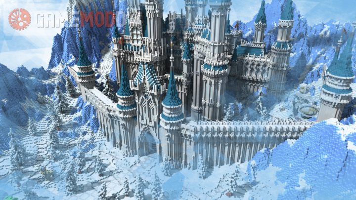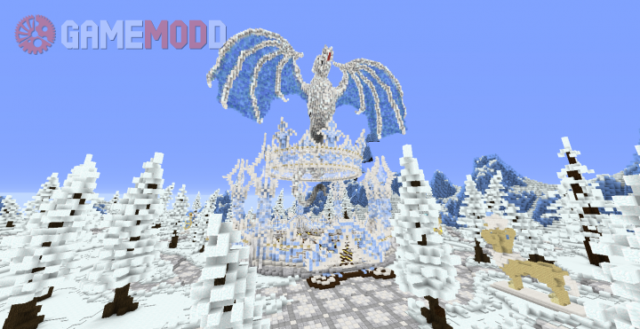 On this map you can live in an incredibly beautiful crystal palace, which is located among the icy expanses. Before the construction is a large Christmas tree, carrying with it a festive mood.