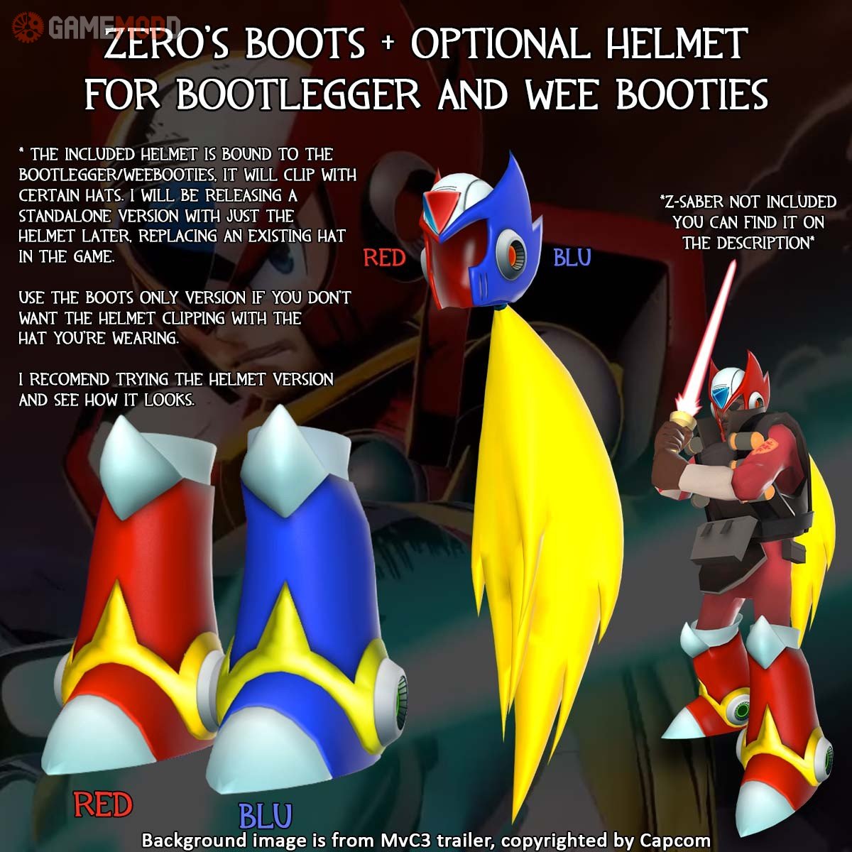 Team-Fortress 2 / TF2 Skins / TF2 Demoman Zero's Jet Boots +7 DOWNLOAD Filesize:13,79 Mb Downloads:59 Views:2 306 Author:Capcom, I Lima Date:10-11-2018 Download Zero's Jet Boots skin Zero's Jet Boots for TF2 Game.